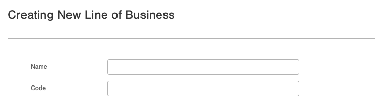 From the Quick Actions shortcut: Press a dot (period) on your keyboard, then select “Line of Business” from the list of Quick Actions. - Click the Create New button in the top right. The "Creating New Line of Business" screen appears.