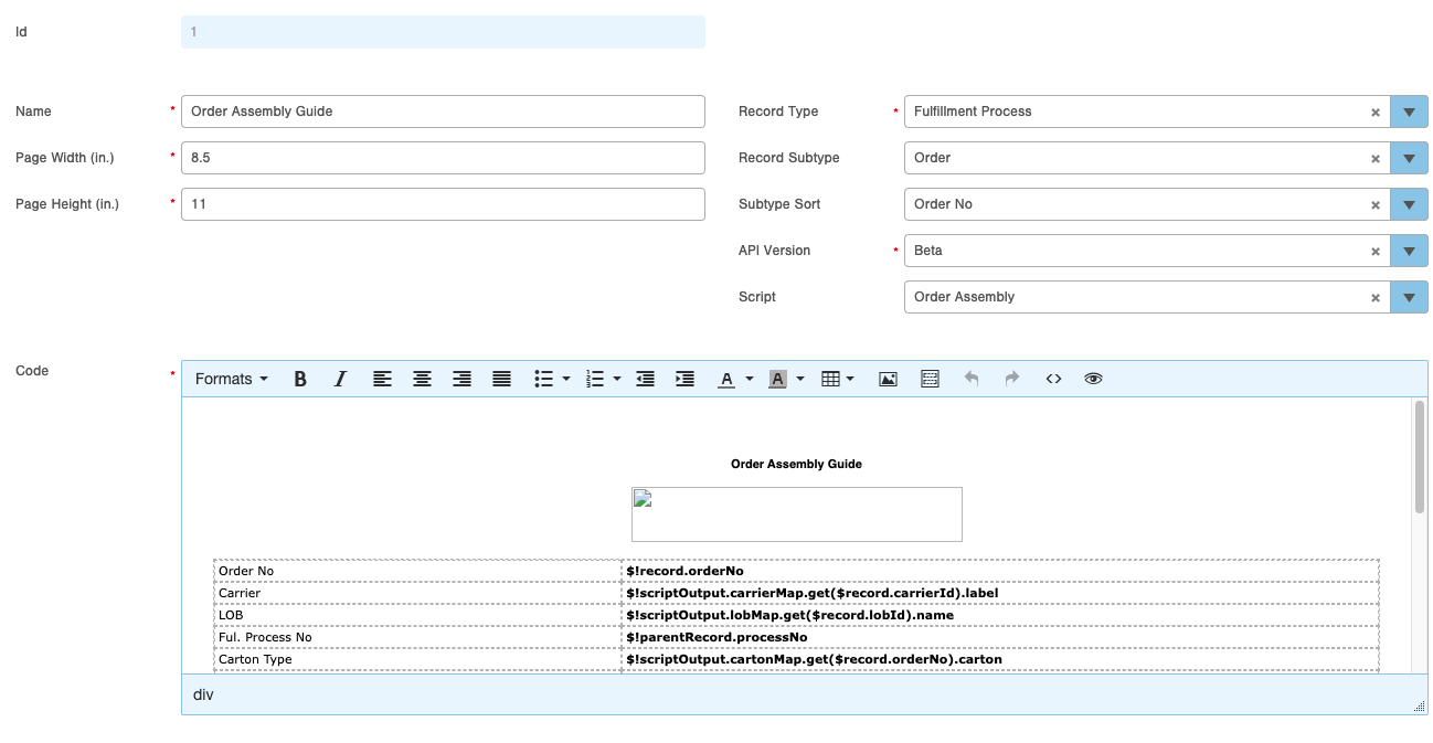 Pro Tip: This specific script is designed to help customize the Cartonization for the Order Assembly Guide. If you do not want that customization included, you will need to delete those parts of the script below. You can fully customize this script to perform the exact customization you are looking for.