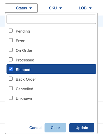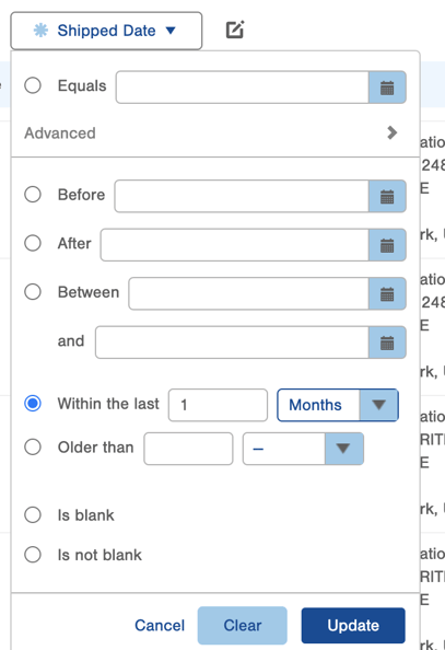 - Filter the column headers to show the data related to your desired output (eg: all shipped orders within 1 month, etc.)