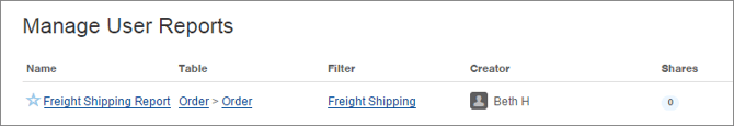 The Manage User Reports window appears displaying all of your user reports. Here's an example: