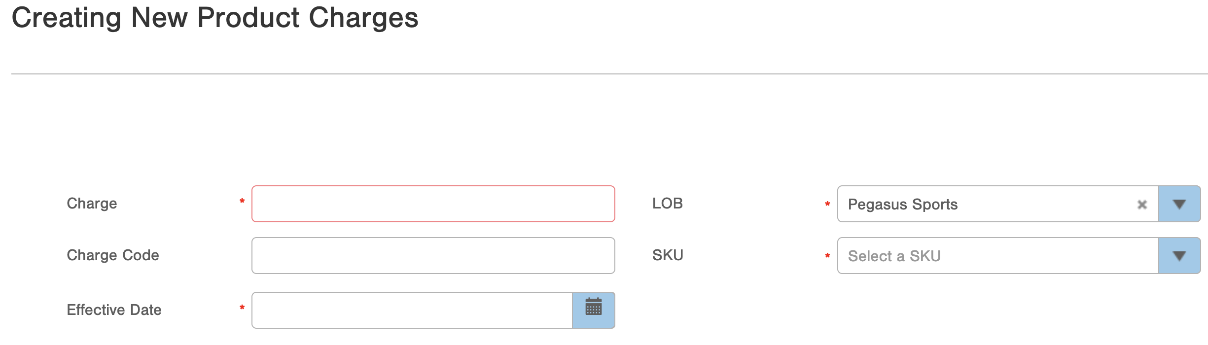 How to create and manage product charges associated with items (SKUs) within a Line of Business (LOB).