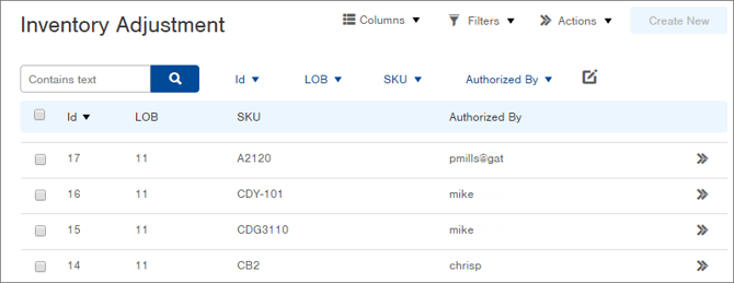 From the Dashboard: Click the “Warehouse Operations” tab, click the “Inventory Management” App, then click the “Inventory Adjustments” Table.