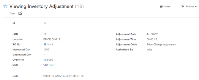 To view an adjustment in more detail, click on the record. Here is a sample adjustment record: