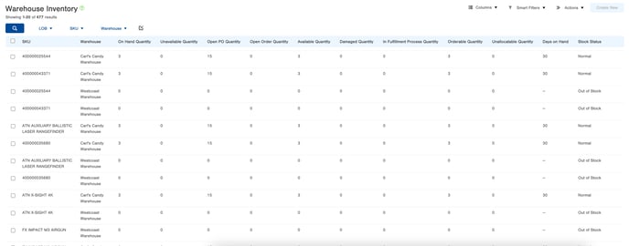 The Warehouse Inventory table populates inventory quantities for each Item within each Warehouse. The inventory quantities available to view reflect those in the “Inventory Level” and “Inventory Status” quantities on Item records. This allows users to filter and drive reports based on inventory within specific Warehouses, LOBs, and SKUs. Quantities in this table are updated every time inventory quantities are adjusted - including added to orders, ASNs are created, inventory is received, Cycle Counts are done resulting in adjusted inventory, orders begin fulfillment, etc.