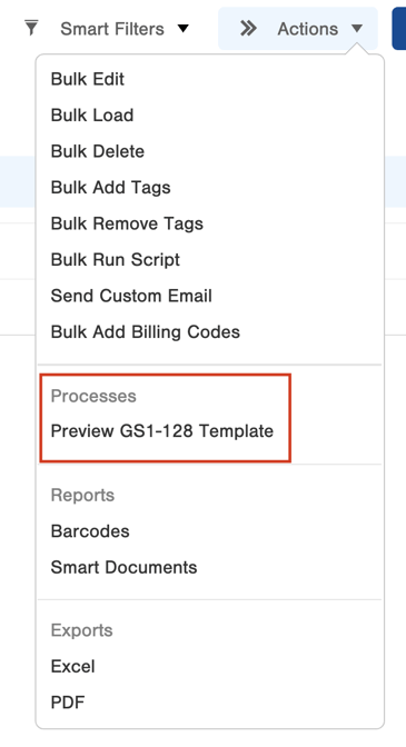 - Using the Quick Actions menu, select the "Preview Gs1-128 Template".