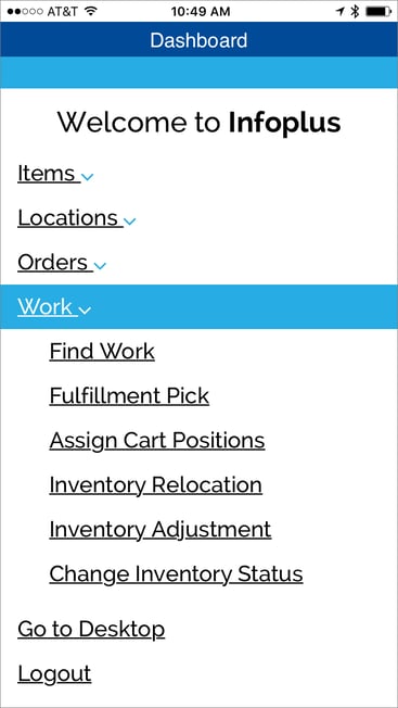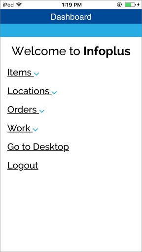 - On a mobile device, log into the Infoplus App. The Infoplus Dashboard appears.