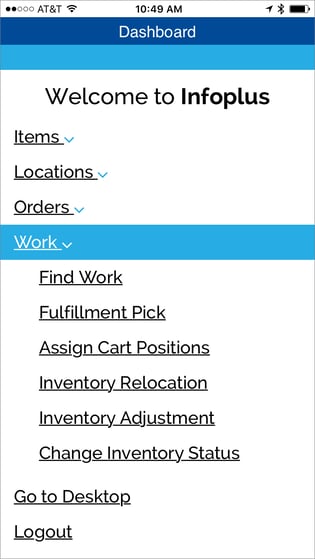 Use the Infoplus mobile app to easily and quickly re-locate inventory by SKU, location or Product ID Tag.